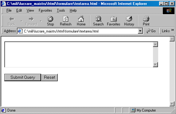 <form action=/cgi-bin/post-query method=POST> <textarea name=comment rows=5 cols=60> </textarea> <P> <input type=submit><input type=reset> </form>